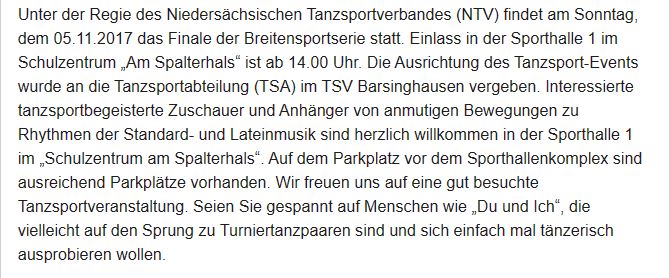 01.11.2017 - Finale der Breitensportserie findet in Barsinghausen statt