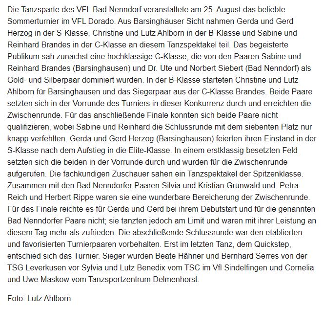 03.09.2018 - Barsinghäuser Tanzpaare geben in Bad Nenndorf ihre Visitenkarte ab