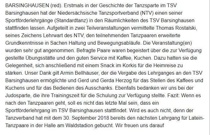15.04.2018 - Sportförderlehrgang des NTV beim TSV Barsinghausen erweitert das Repertoire