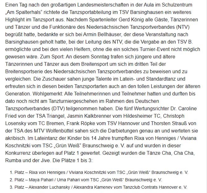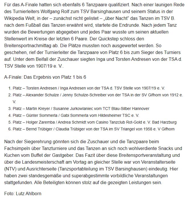 18.09.2018 - Tänzer aus dem Breitensport verzaubern in Barsinghausen mit tollen Leistungen