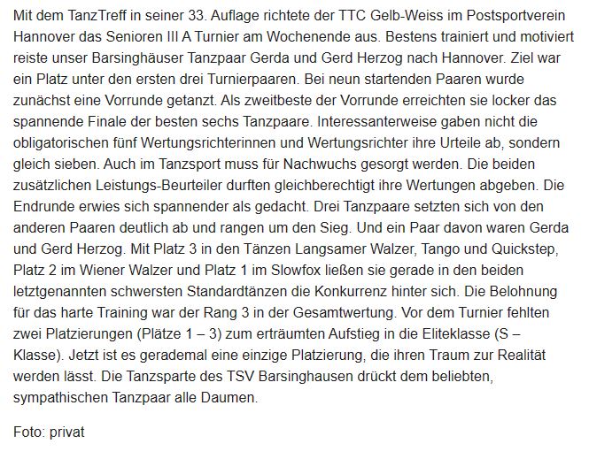 25.04.2018 - Tanzsportpaar Herzog träumt vom Aufstieg in die höchste deutsche Turnierklasse