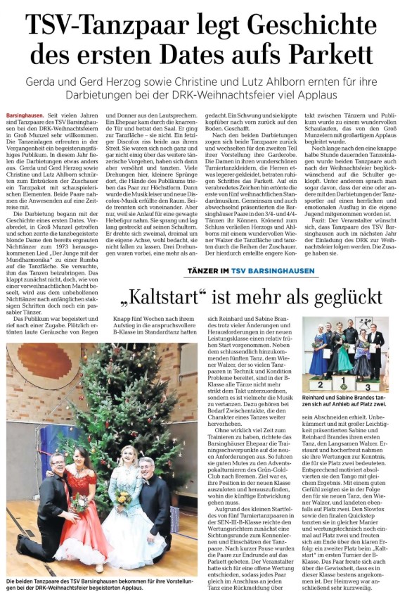"Tänzer im TSV Barsinghausen" - So titelt der regionale Teil der HAZ unter "Mein Verein" am 31.12.2019