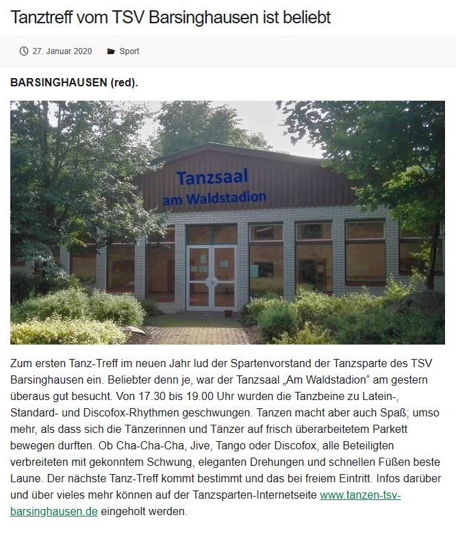 27.01.2020 - Tanztreff vom TSV Barsinghausen ist beliebt
