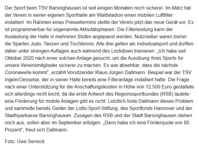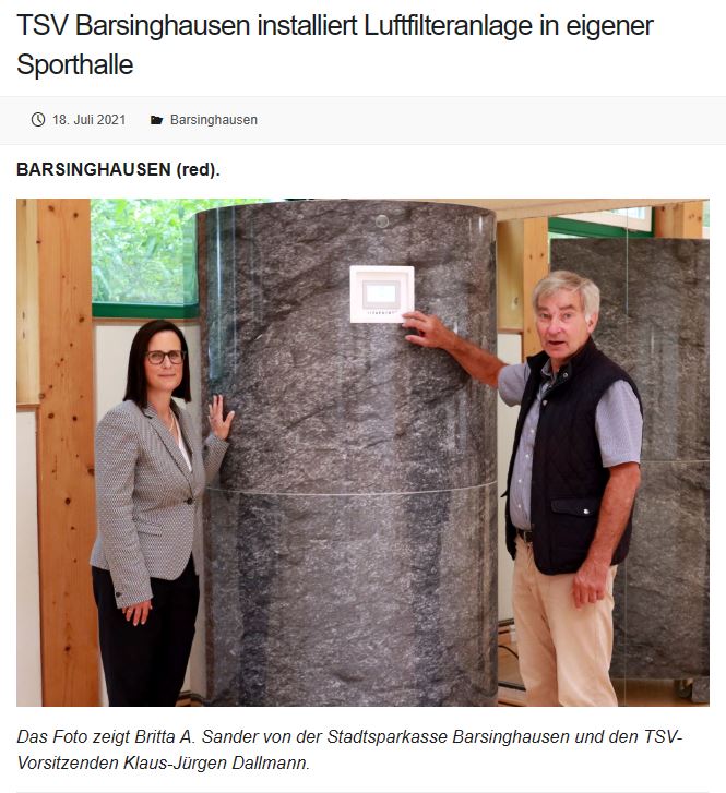 18.07.2021 - TSV Barsinghausen installiert Luftfilteranlage in eigener Sporthalle