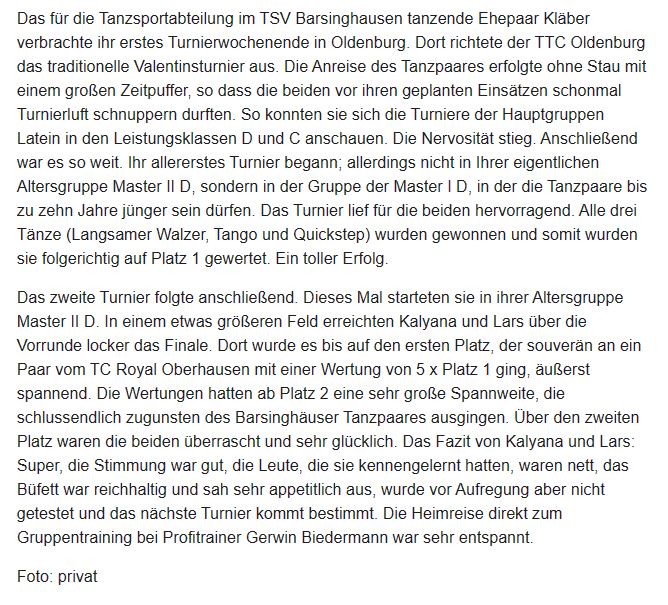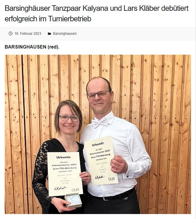 19.02.2023 - Tanzpaar Kläber debütiert im Turnierbetrieb