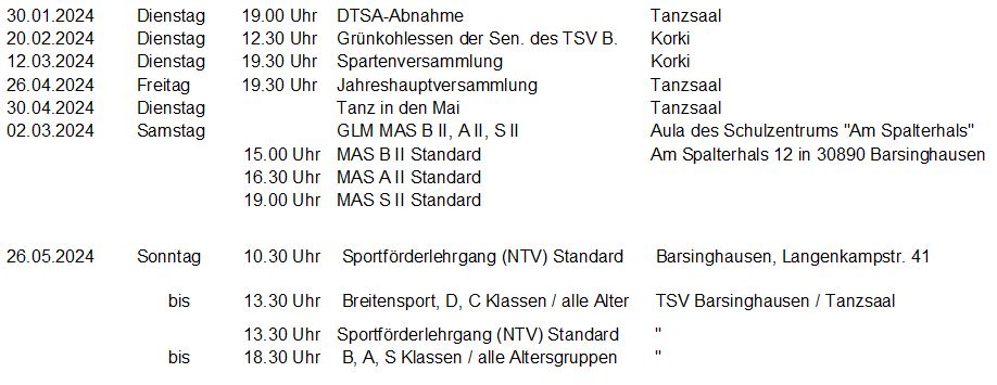 Kalender 2024 TSA im TSV Barsinghausen - Änderungen vorbehalten)