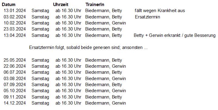 Kalender 2024 (Trainerteam Hamburg) - Änderungen vorbehalten)
